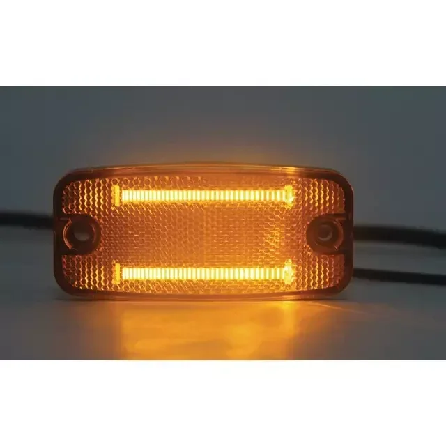 De Oranje LED Breedtelamp is ontworpen om de zijkanten van trailers, aanhangers en landbouwmachines duidelijk zichtbaar te maken, wat bijdraagt aan de veiligheid op de weg. Met twee krachtige LED's biedt deze lamp een heldere oranje verlichting die de breedte van uw voertuig effectief aangeeft.