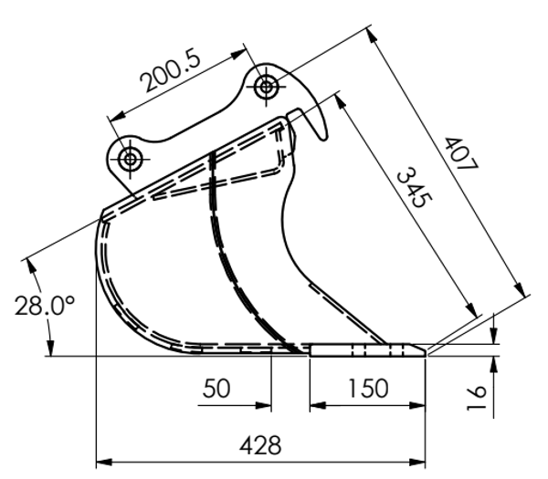Dieplepelbak 400 mm – 0,8 tot 1,2 ton (S30-150 aansluiting)