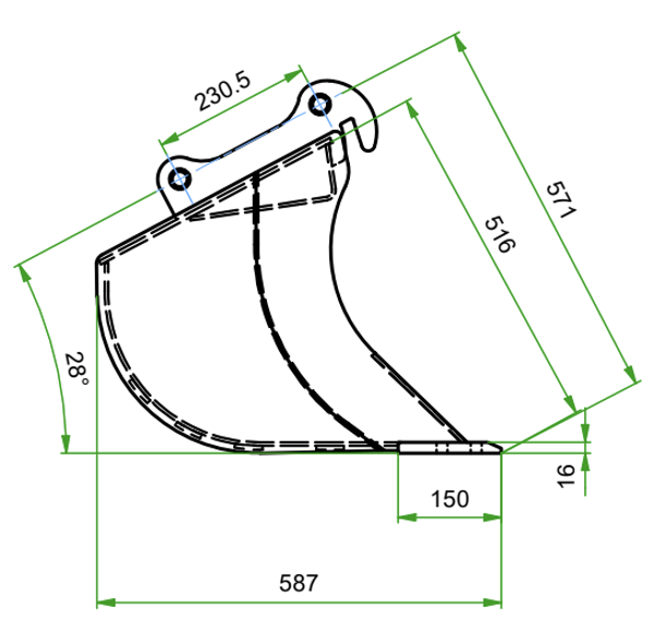 Dieplepelbak 400 mm – 1,2 tot 2,2 ton (S30-180 aansluiting)