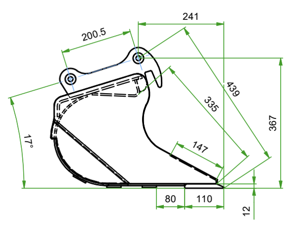 De bak is aan de onderzijde uitgevoerd met extra slijtstrippen voor een langere levensduur en voorzien van een moedermes uit slijtvast HB400-staal, wat garant staat voor uitstekende duurzaamheid en graafefficiëntie in uiteenlopende bodemtypes.
